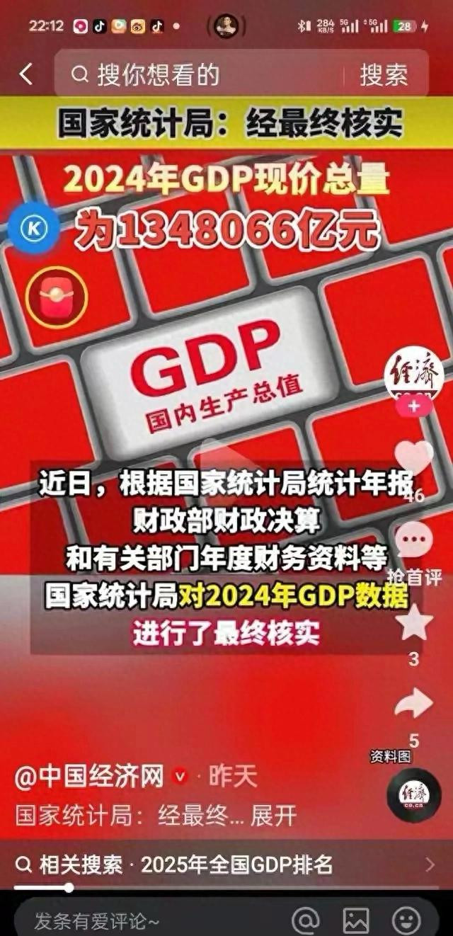 国家统计局官宣最终数据!2024年GDP定格134.8万亿元,换算后达18.928万亿美元。